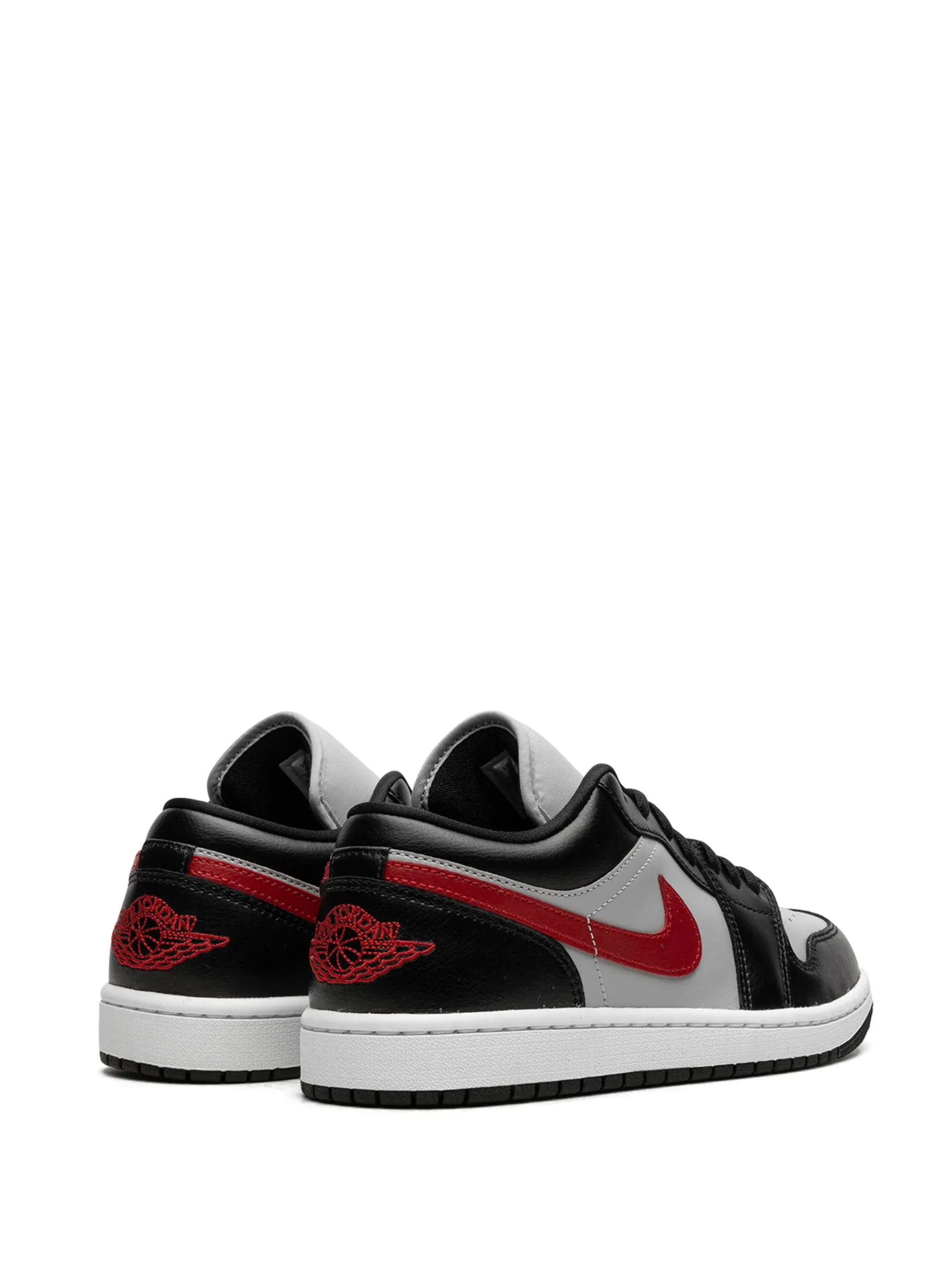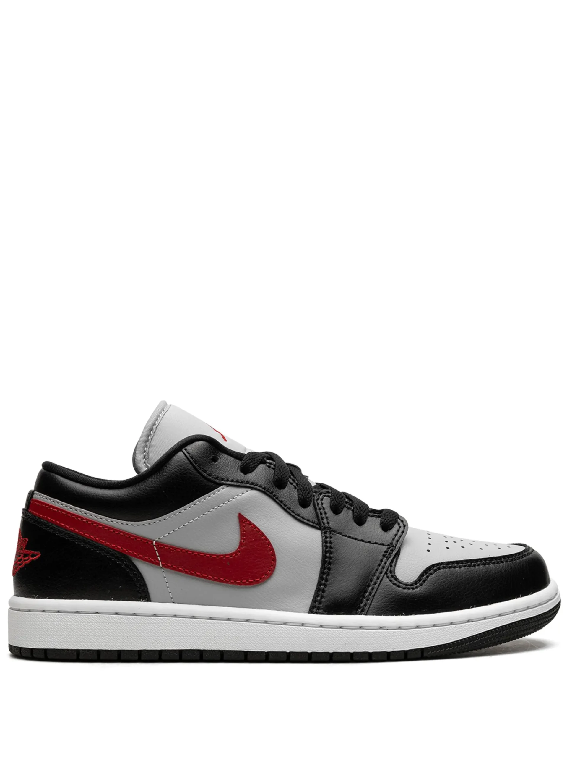 Черный, серый, красный, кожа, логотип Nike Swoosh, логотип Air Jordan Wings, закругленный носок, шнуровка спереди, язычок с вышитым логотипом, стелька с логотипом и резиновая подошва.